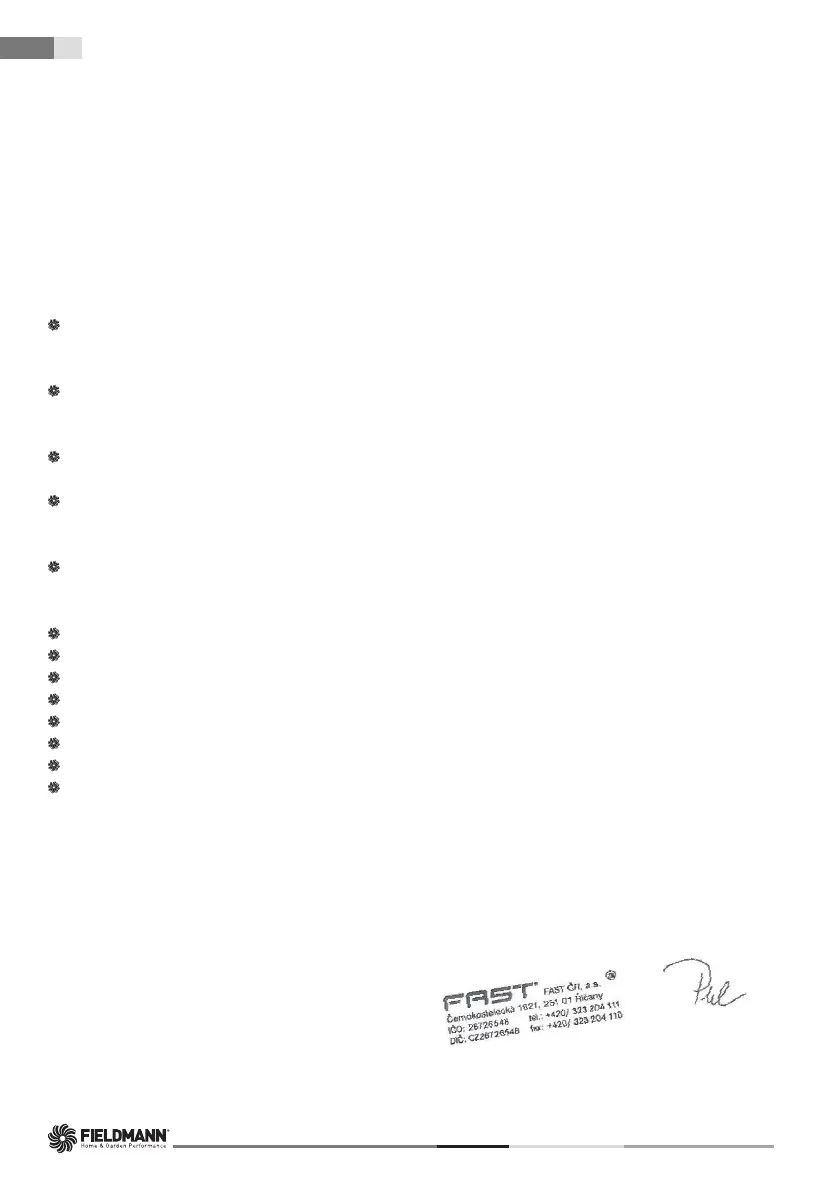 Het bedrijf FAST ČR, a.s.is gemachtigd om in naam van de fabrikant op te treden.