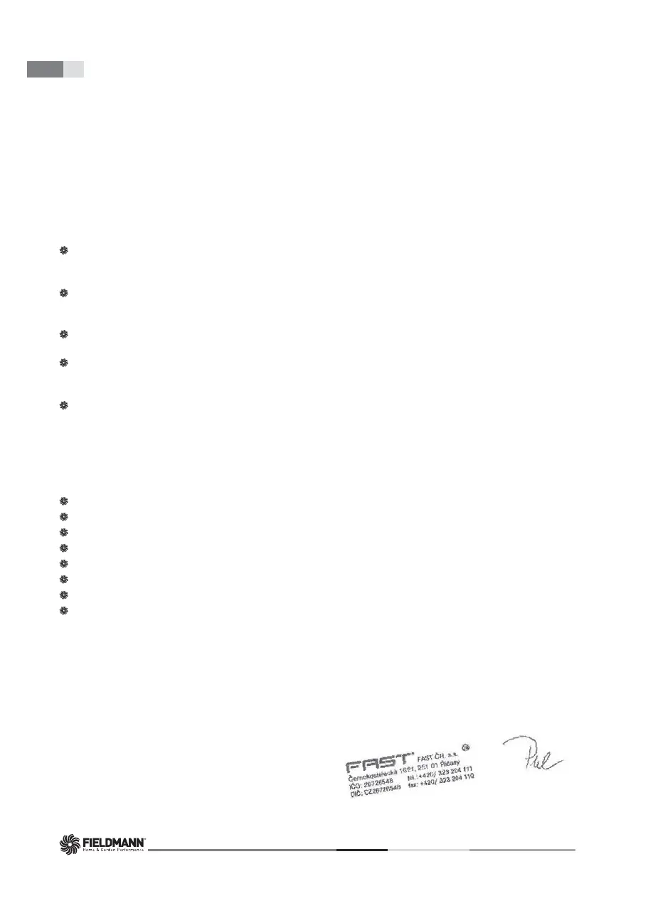 FAST ČR, a.s. is authorised to act on behalf of the manufacturer.
