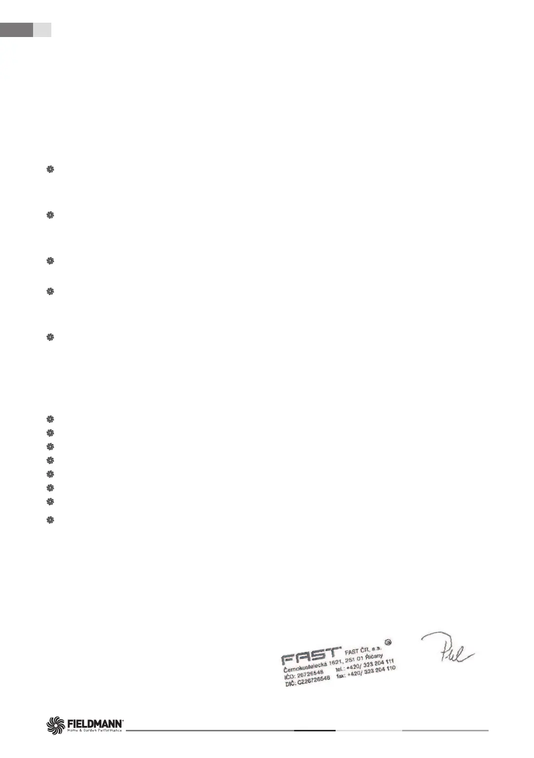 FAST ČR, a.s. is authorised to act on behalf of the manufacturer.