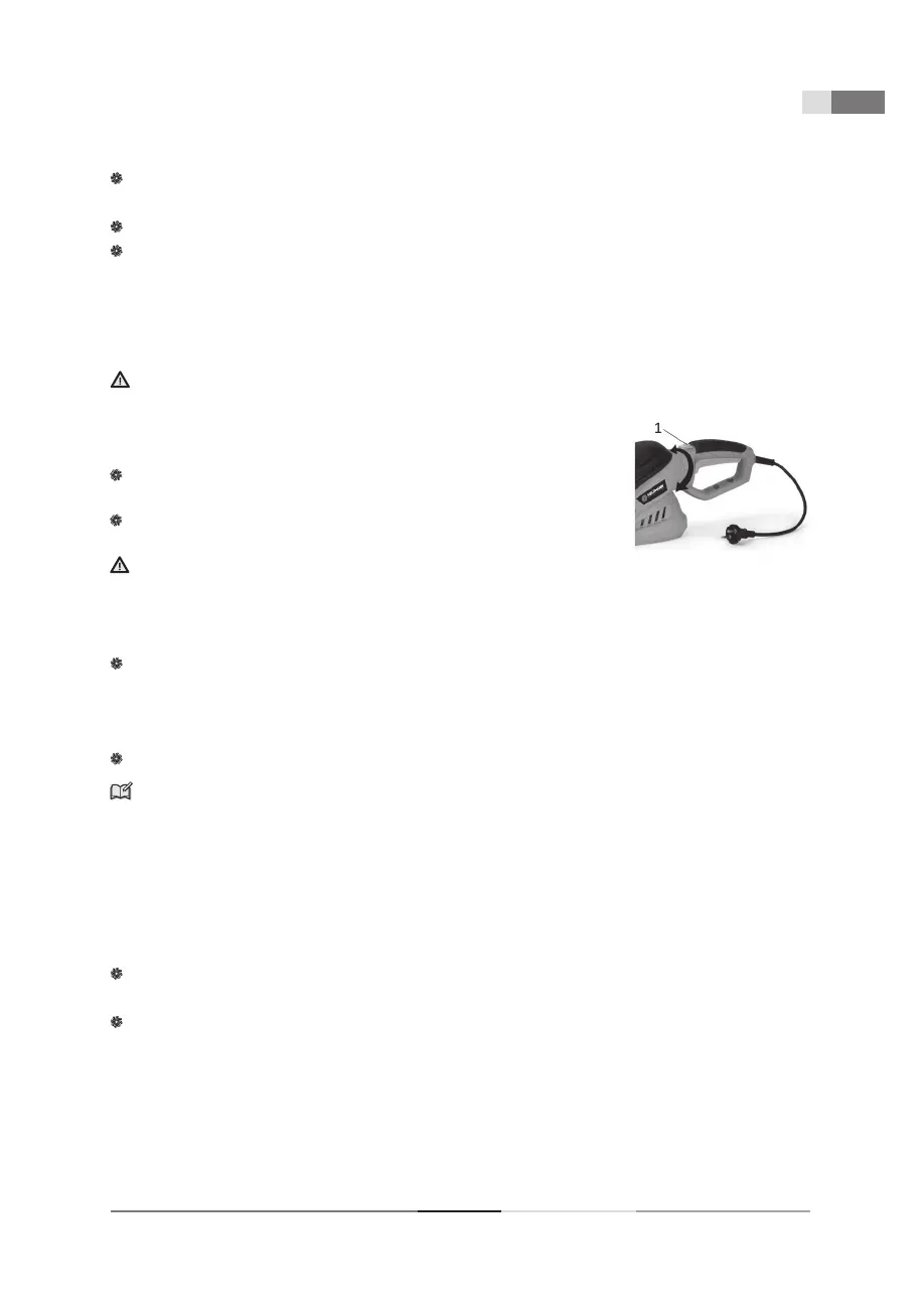 Za pomocą obu rąk należy jednocześnie wcisnąć włącznik na rękojeści tylnej (Rys. 1 - punkt 6)