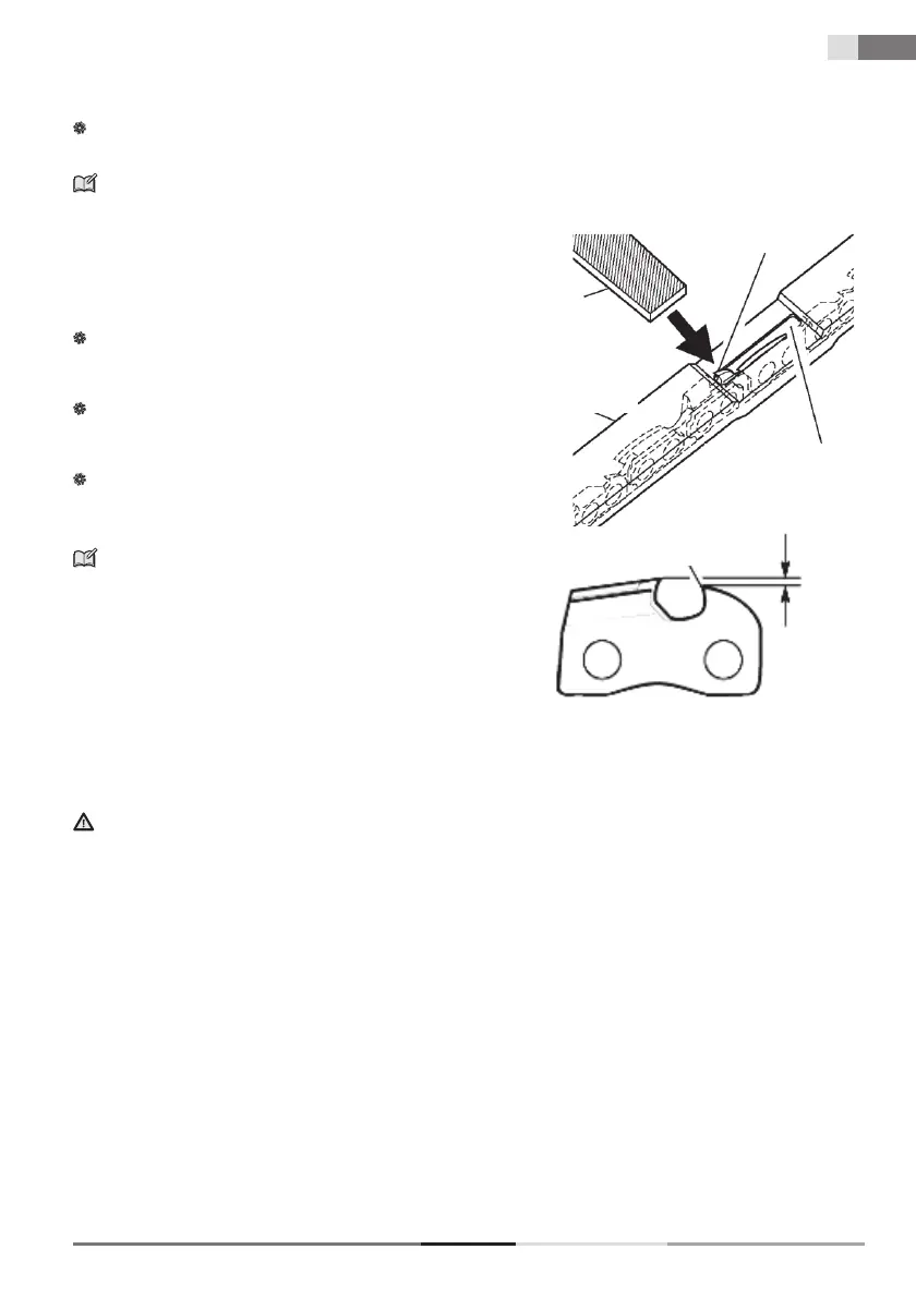 Note: Two to three passes of the fi le should be suffi cient to sharpen the tooth.
