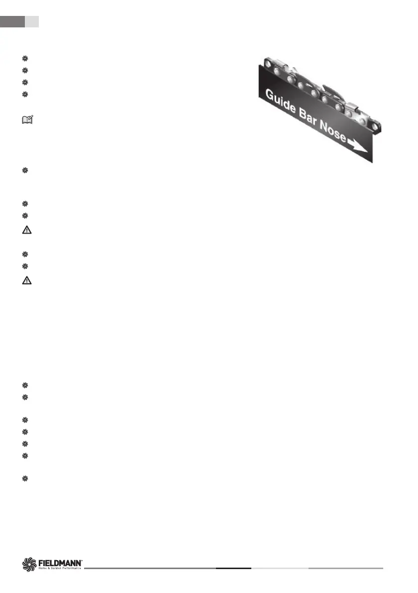 Uwaga: Upewnij się, że zęby tnące łańcucha są