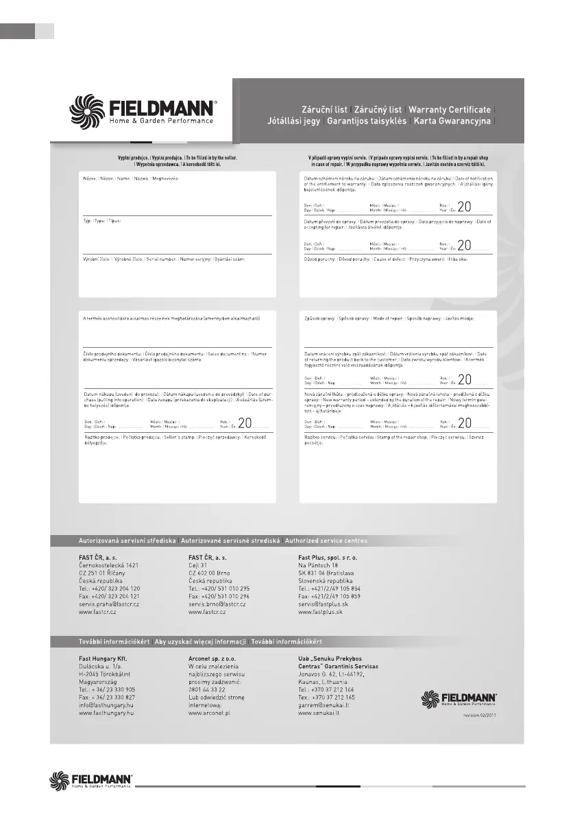 Fieldmann FZR 2010-E - Gwarancja I Jej Warunki; Jótállási Jegy; Warranty Certificate; Záruční List