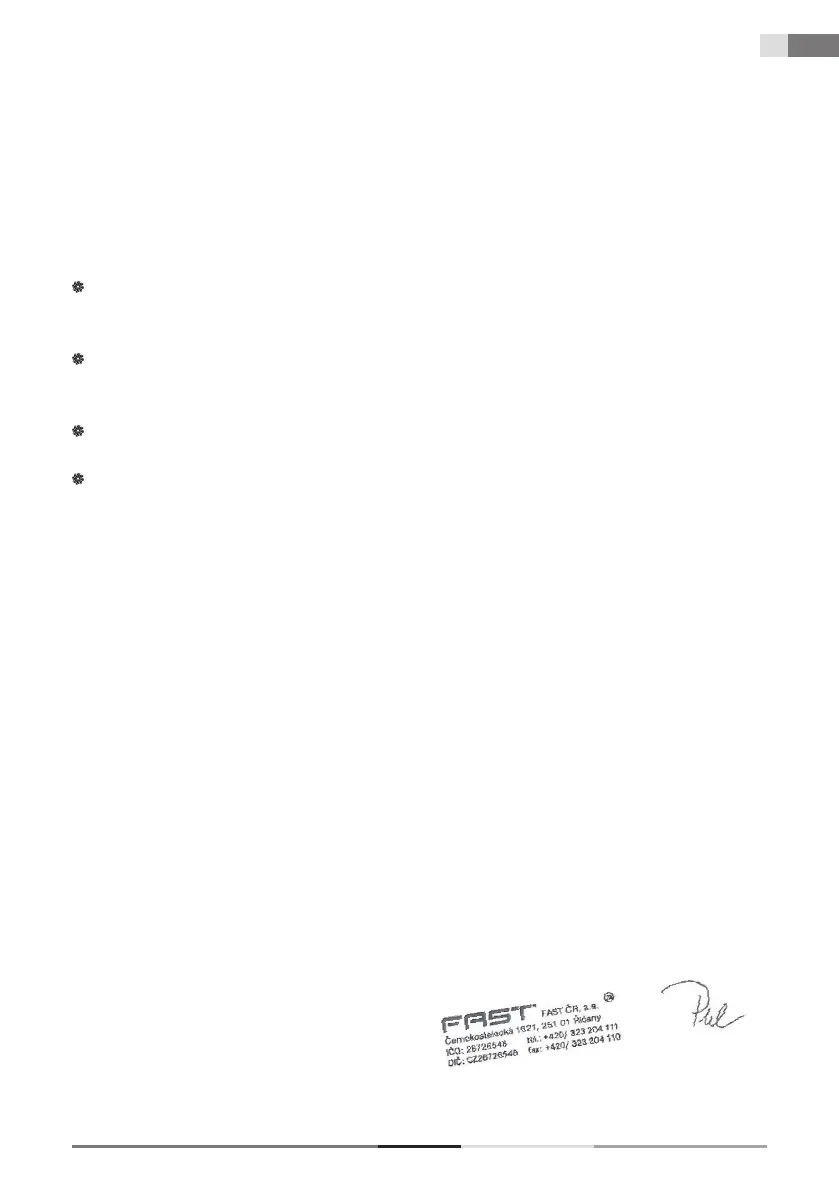 Společnost FAST ČR, a.s. je oprávněna jednat jménem výrobce.