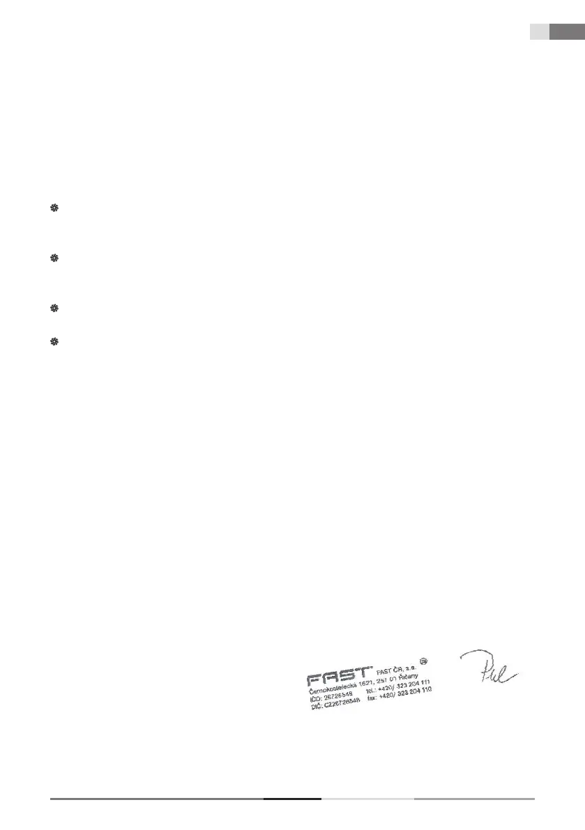 A FAST ČR, a.s. a gyártó nevében eljárni jogosult személy.
