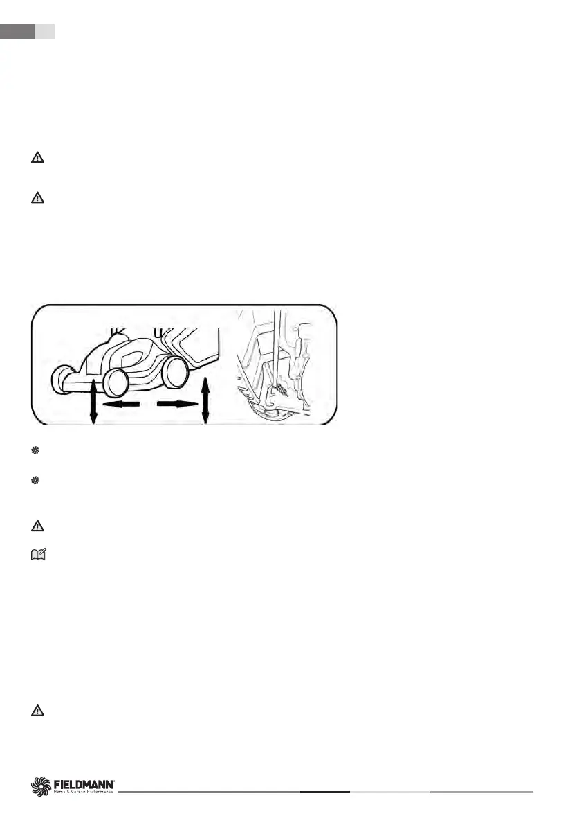 ATTENTION: Do not start the lawnmower when it is standing in a place with tall grass.