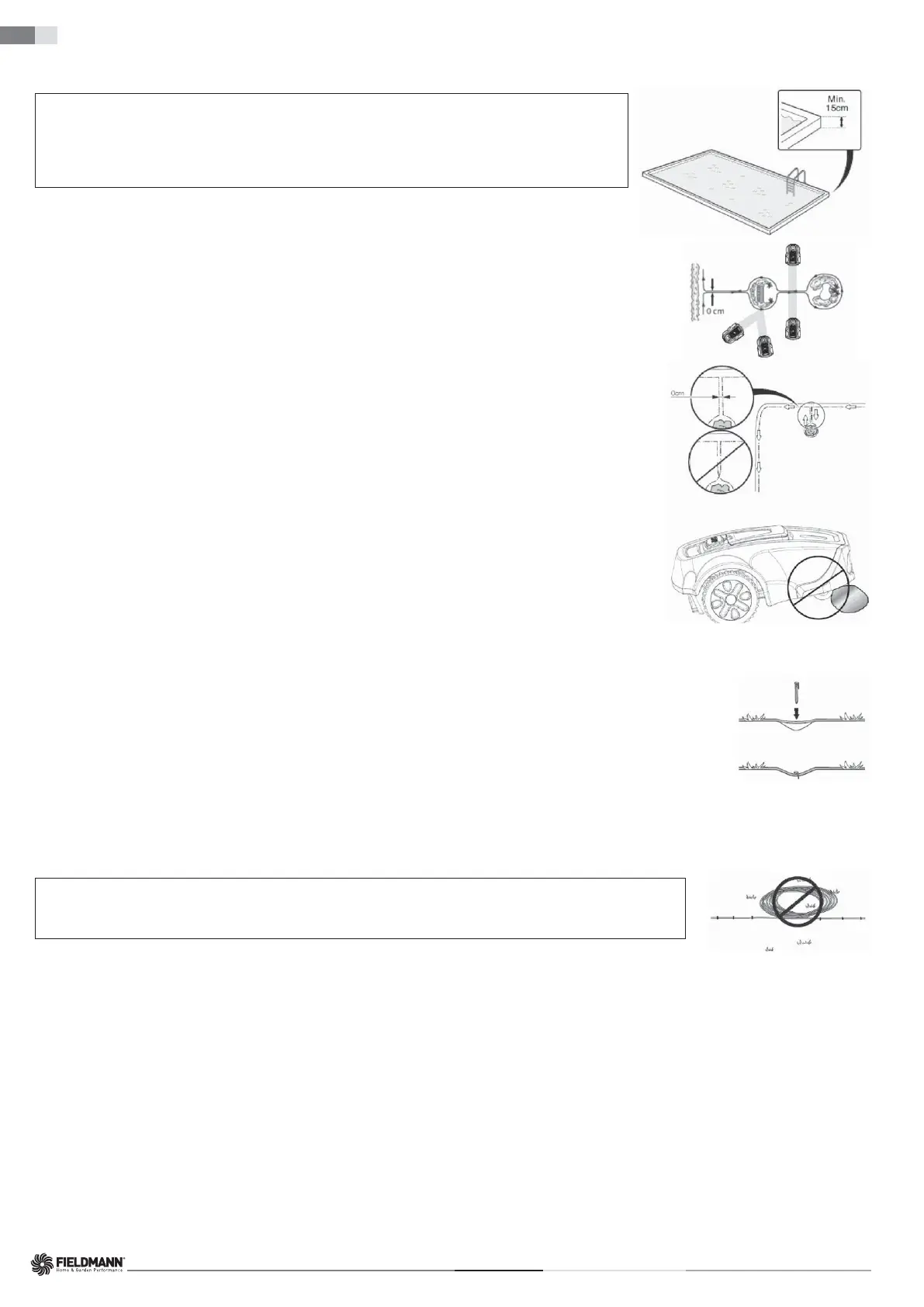 at least 15 cm. This ensures that the robotic lawn mower never leaves the working area under