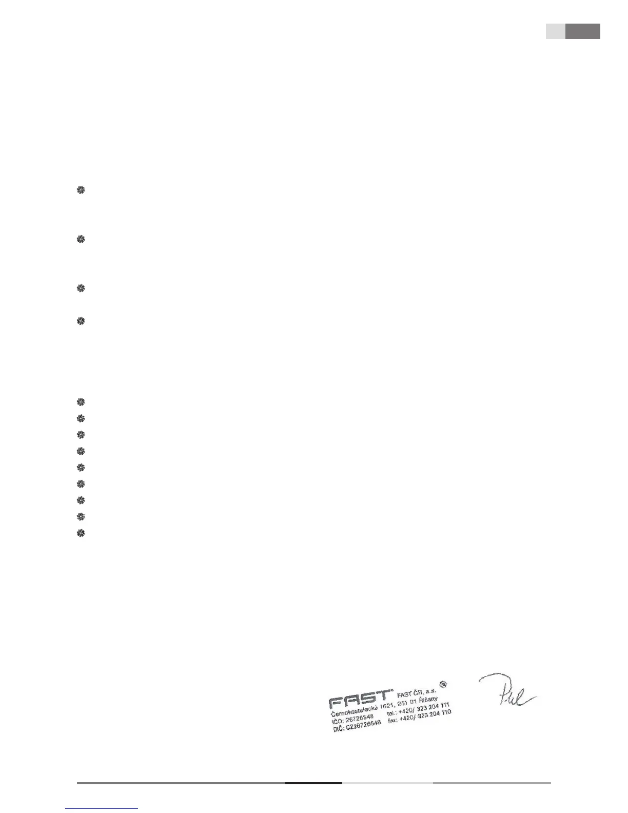 Компания АО «FAST ČR, a.s.» имеет право выступать от имени изготовителя.