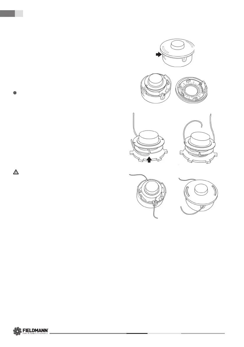- Strunovú hlavu naskrutkujte na hriadeľ otáčaním
