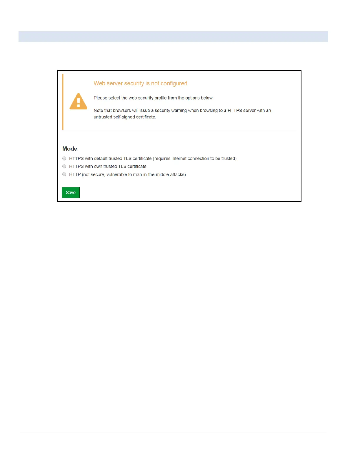 NOTICE: To change the web server security mode after initial setup, go to Section 9.2