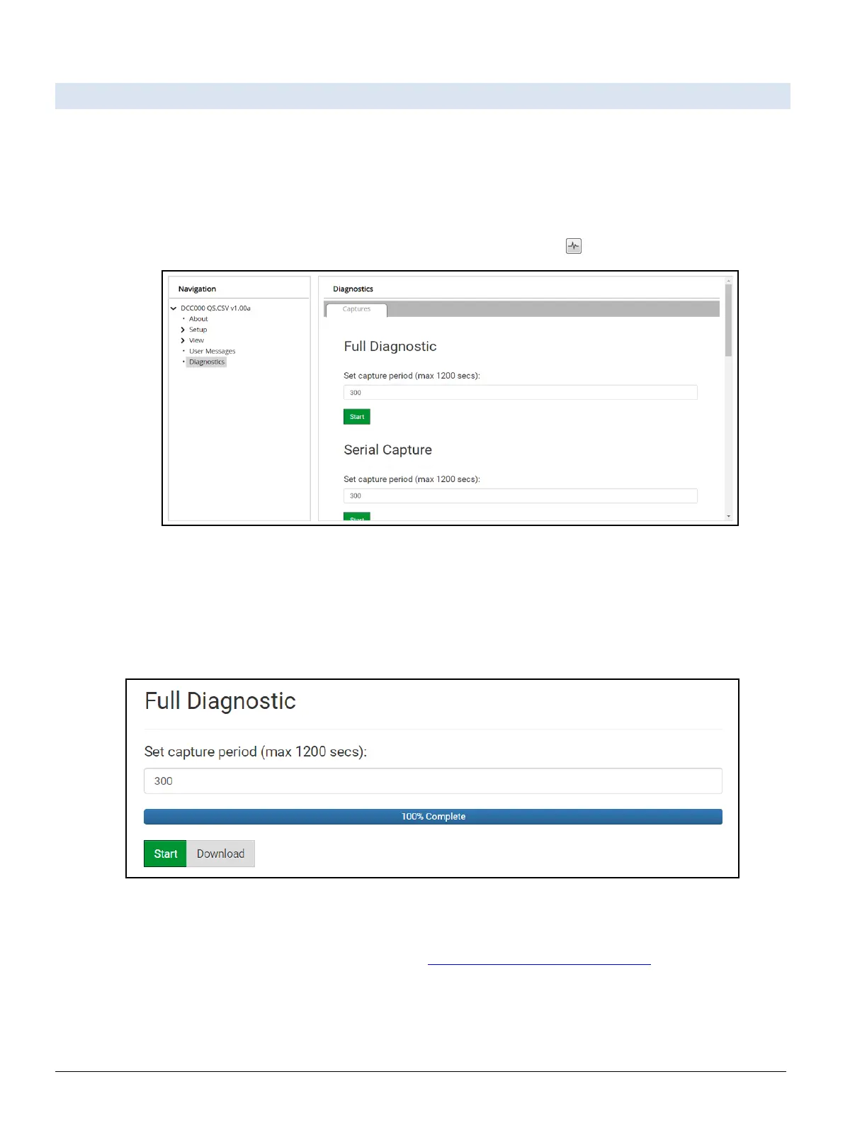 • Click the Start button under the Full Diagnostic heading to start the capture.