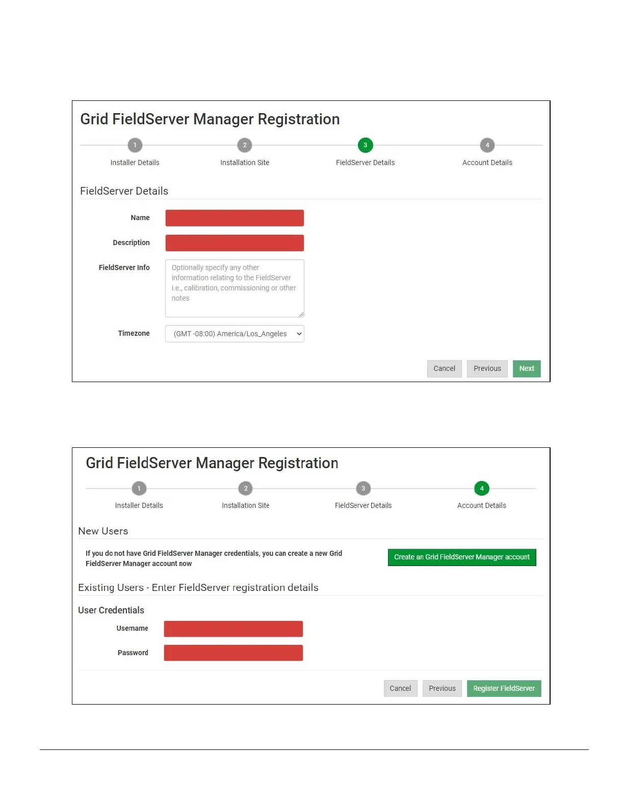 ◦ Click the “Create an Grid FieldServer Manager account” button and enter a valid email to send a
