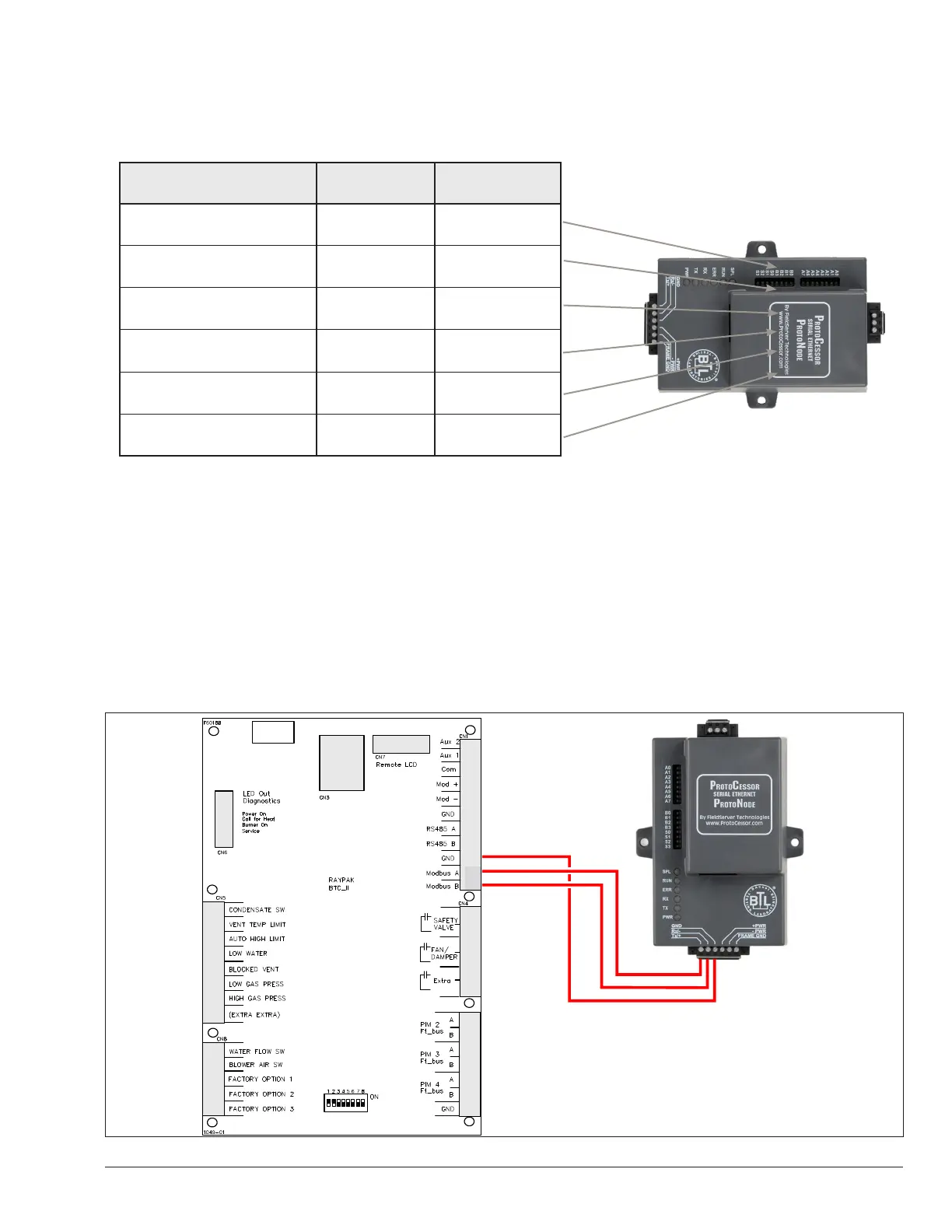 Raypak Pin # ProtoNode Pin Assignment