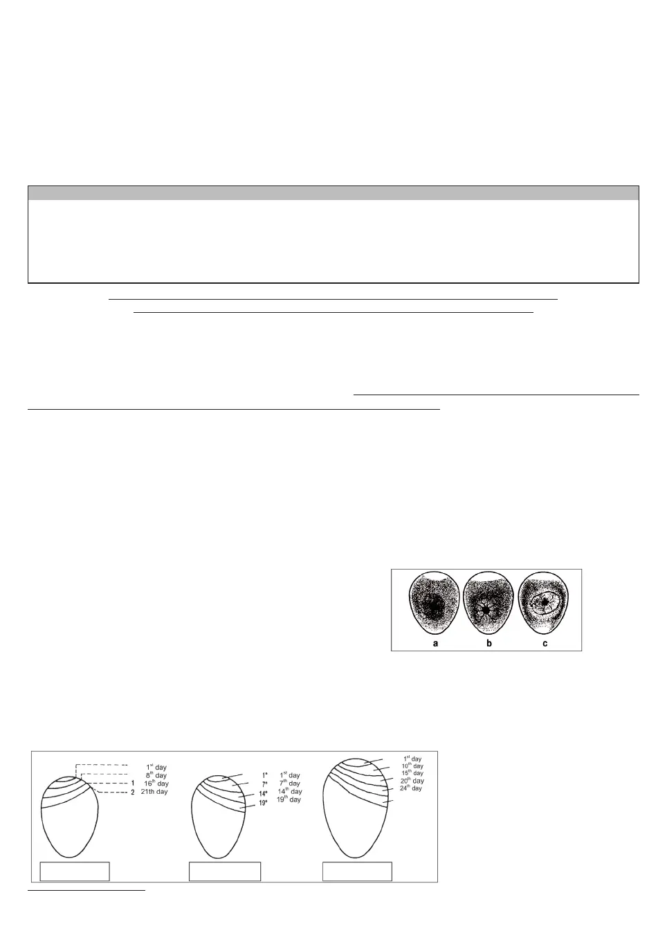 c) Egg with dead embryo at 5th - 6th day of incubation