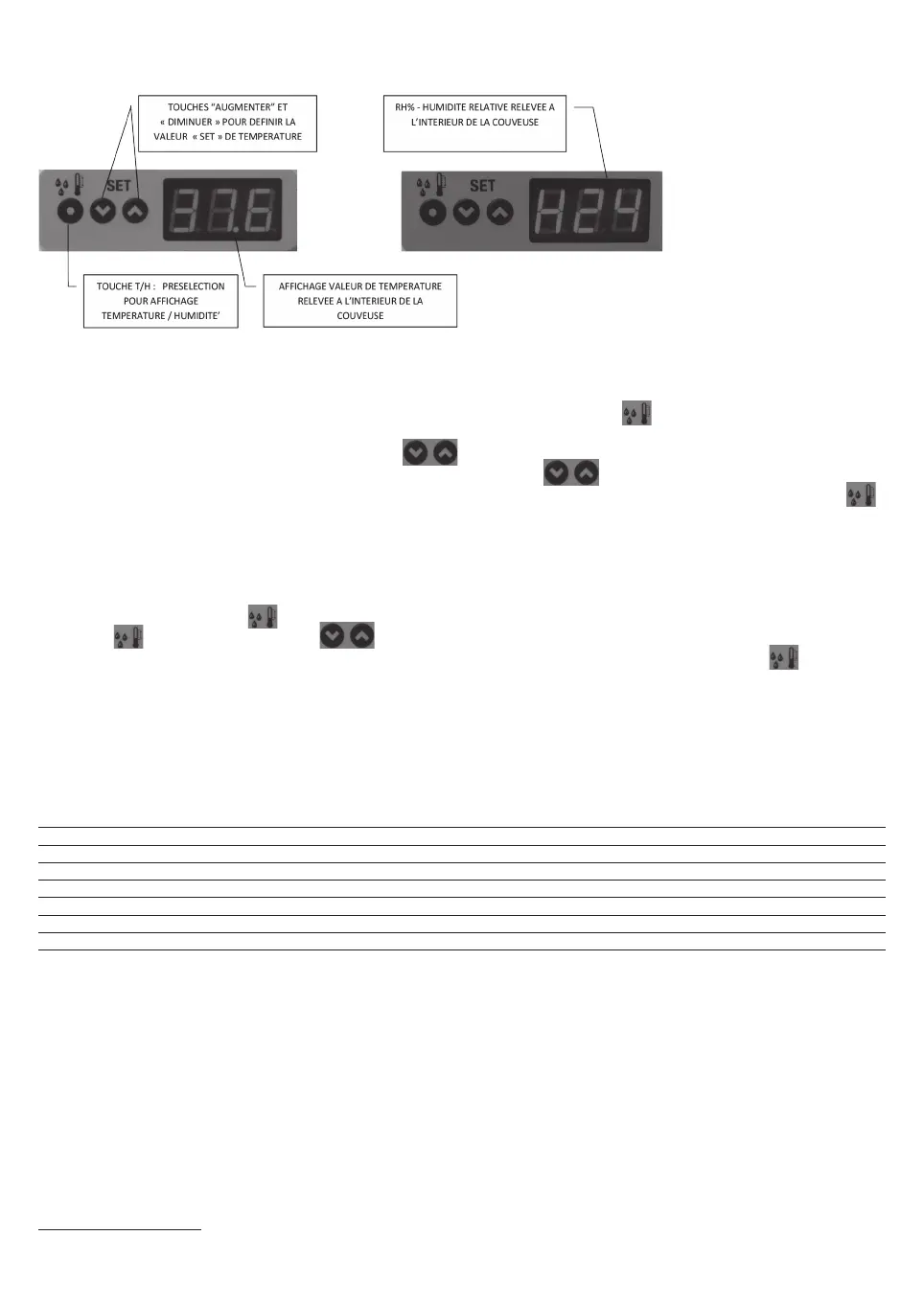 temps de lire la valeur d’humidité relative RH% grâce au capteur double T / H. Une fois la couveuse est allumée