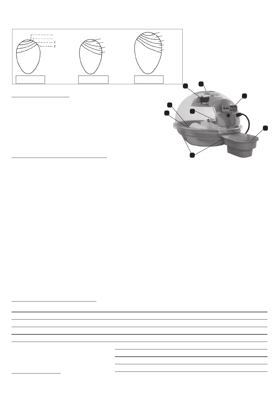 • Die Position der Eier mindestens einmal wöchentlich wechseln, um die Innentemperatur noch gleichmäßiger zu