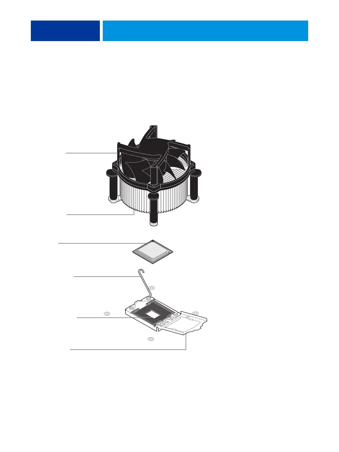 the CPU socket (see page 41). The CPU cooling assembly consists of a fan and a heatsink.