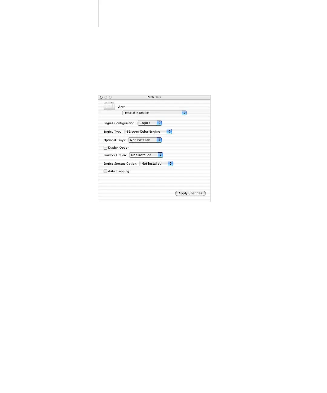 5. In the Printer Info dialog box, select the appropriate settings from the menus.