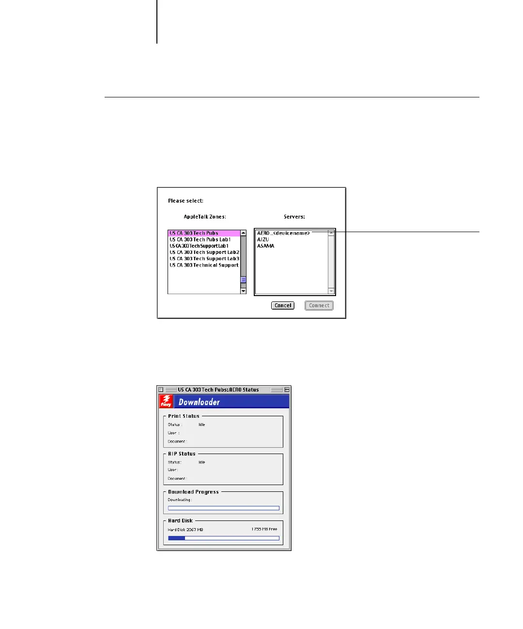 2. Select the AppleTalk zone in which the Fiery X3e is located from the AppleTalk
