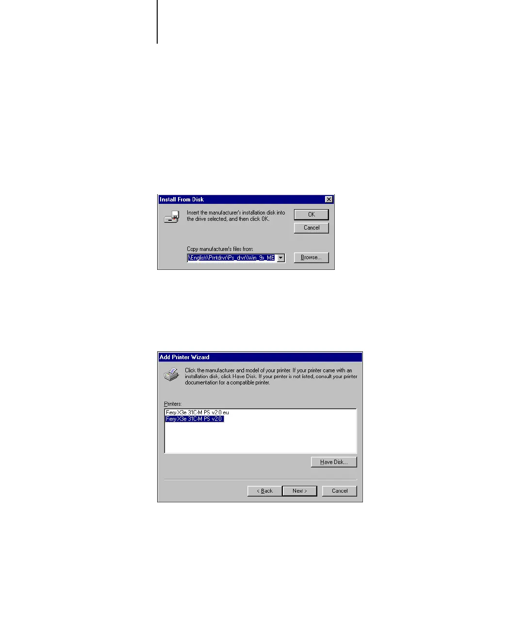 8. Select the Fiery X3e printer driver appropriate for your printer and click Next.