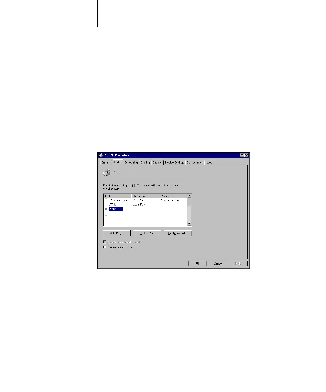 Verify that the connection to the NetWare queue is listed and selected as a port for
