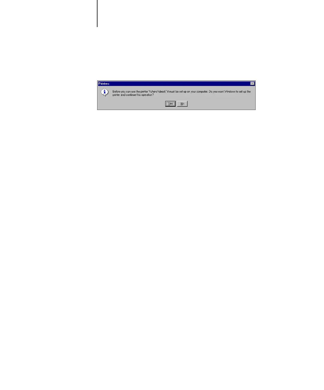 The Printers dialog box appears, asking whether you want to set up the printer.