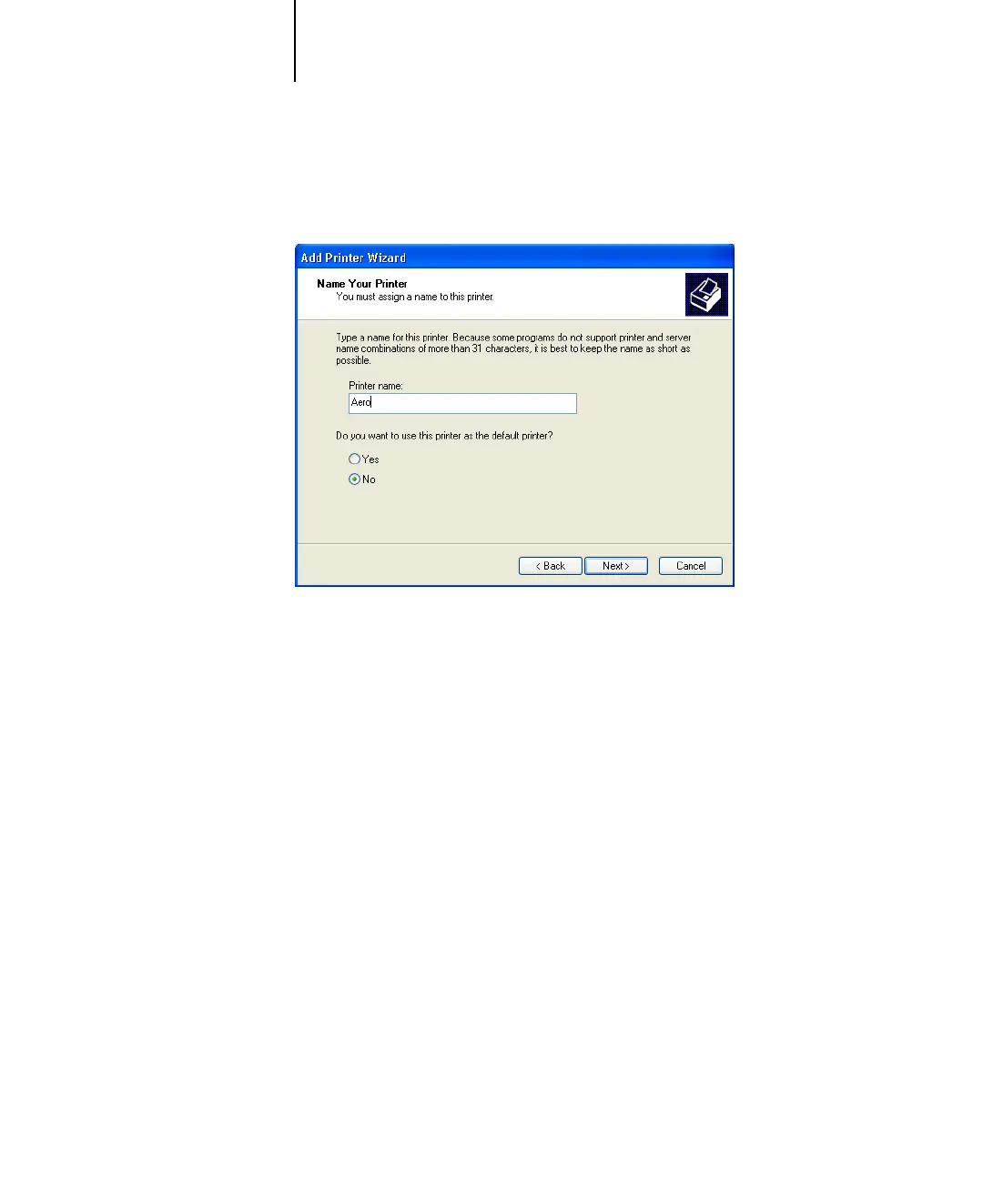 9. Type a name for the Fiery X3e in the Printer name field.