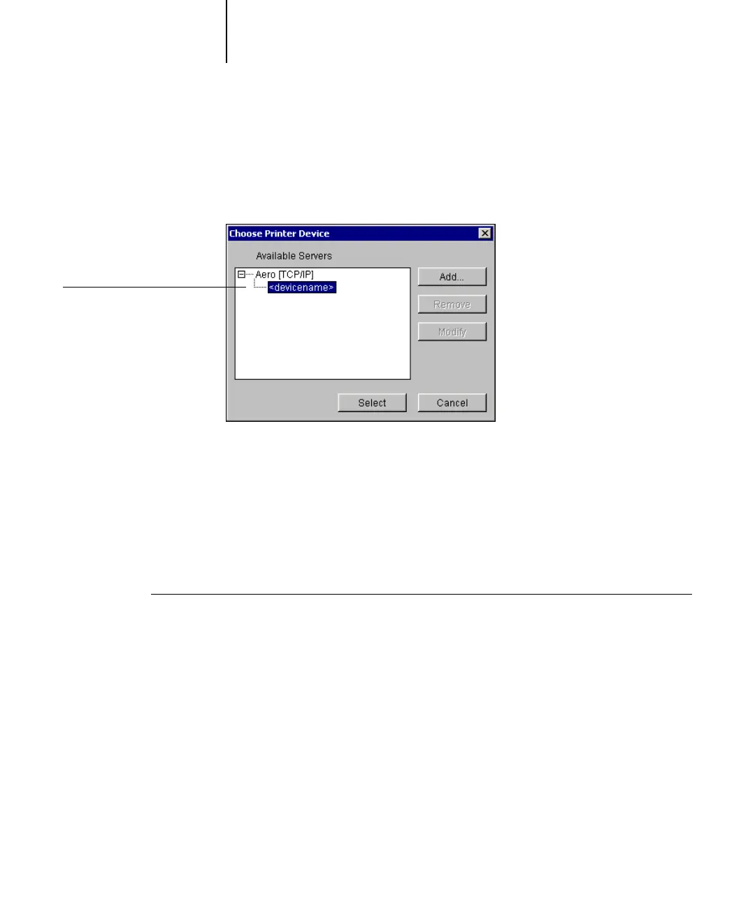 6. With the device name selected in the list of Available Servers, click Select to begin