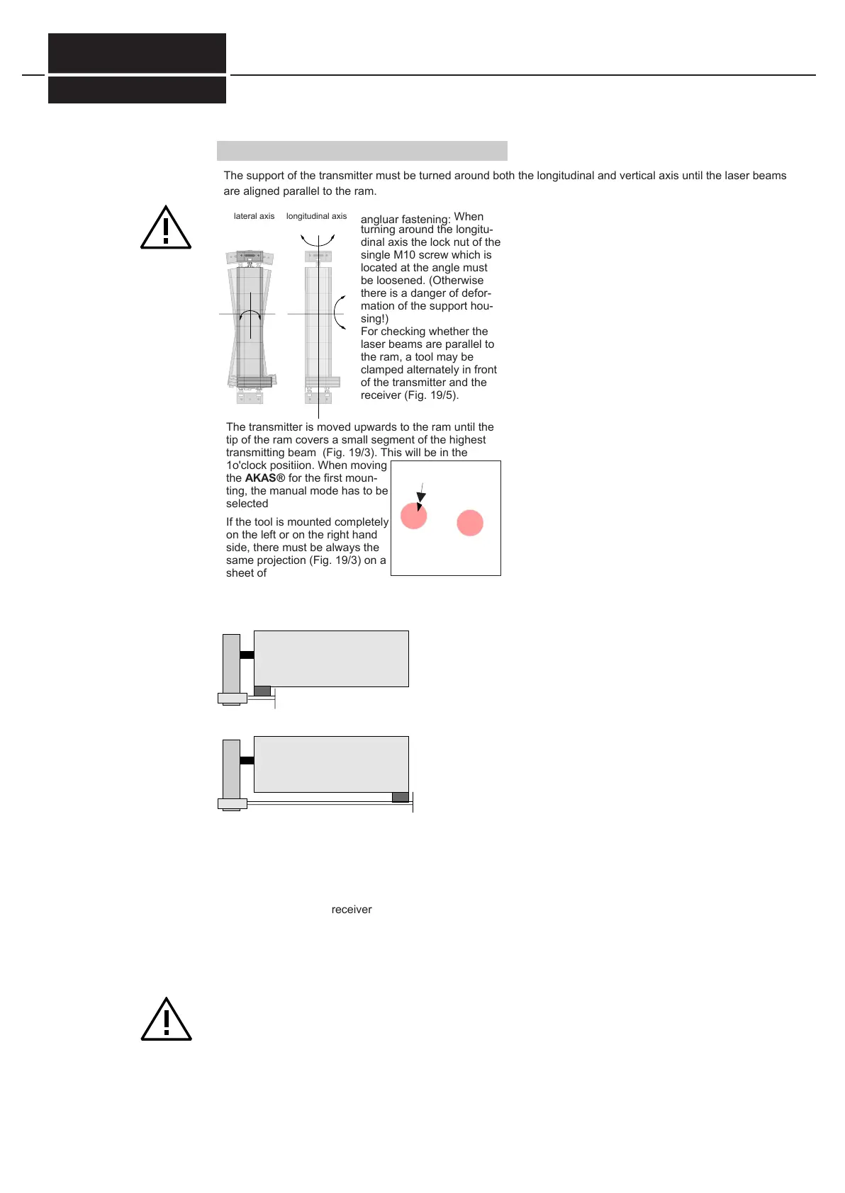 The support of the transmitter must be turned around both the longitudinal and vertical axis until the laser beams