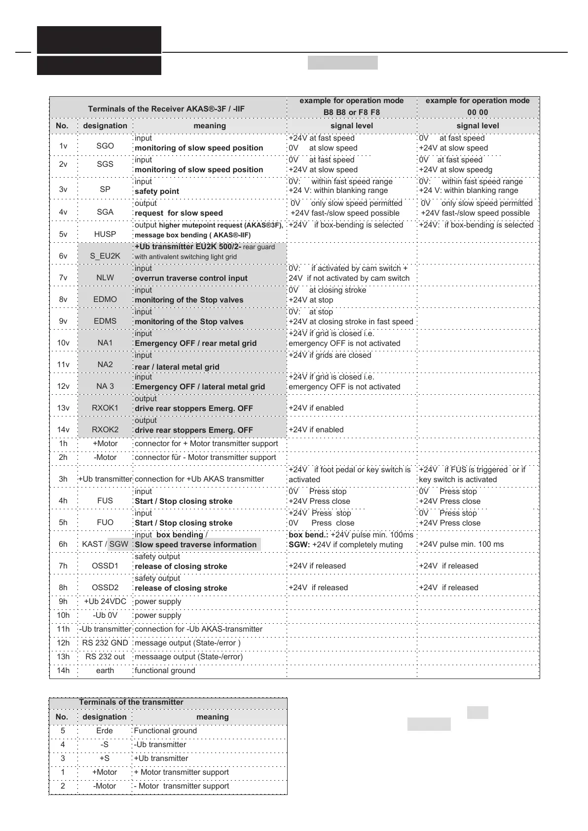Terminals of the Receiver AKAS®-3F / -IIF