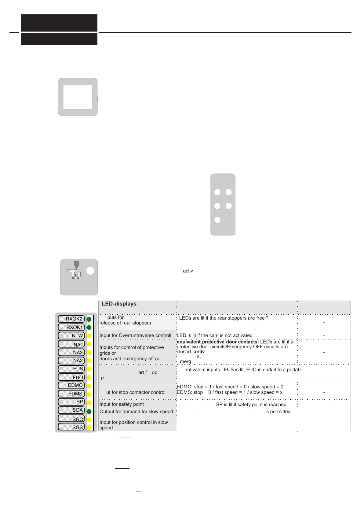 If the protective door contacts are antivalent, NA2 must be lit, and NA3 must be dark. If necessary check the con-