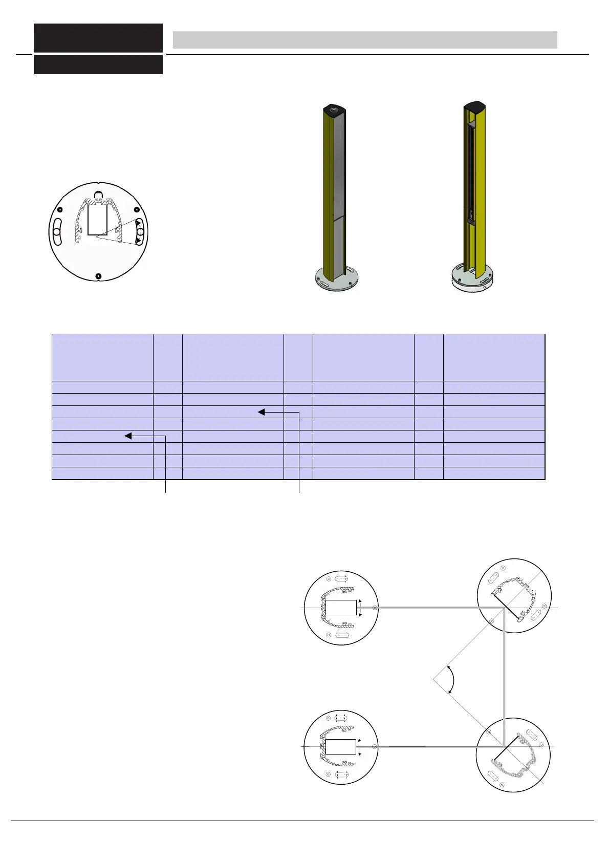 fig 23/2 assembly columns for light curtains and tilted mirrors