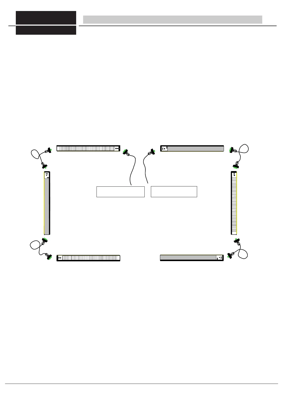 Up to 3 light curtains may be connected in series (cascaded). The cascading of the light curtains considerably reduces