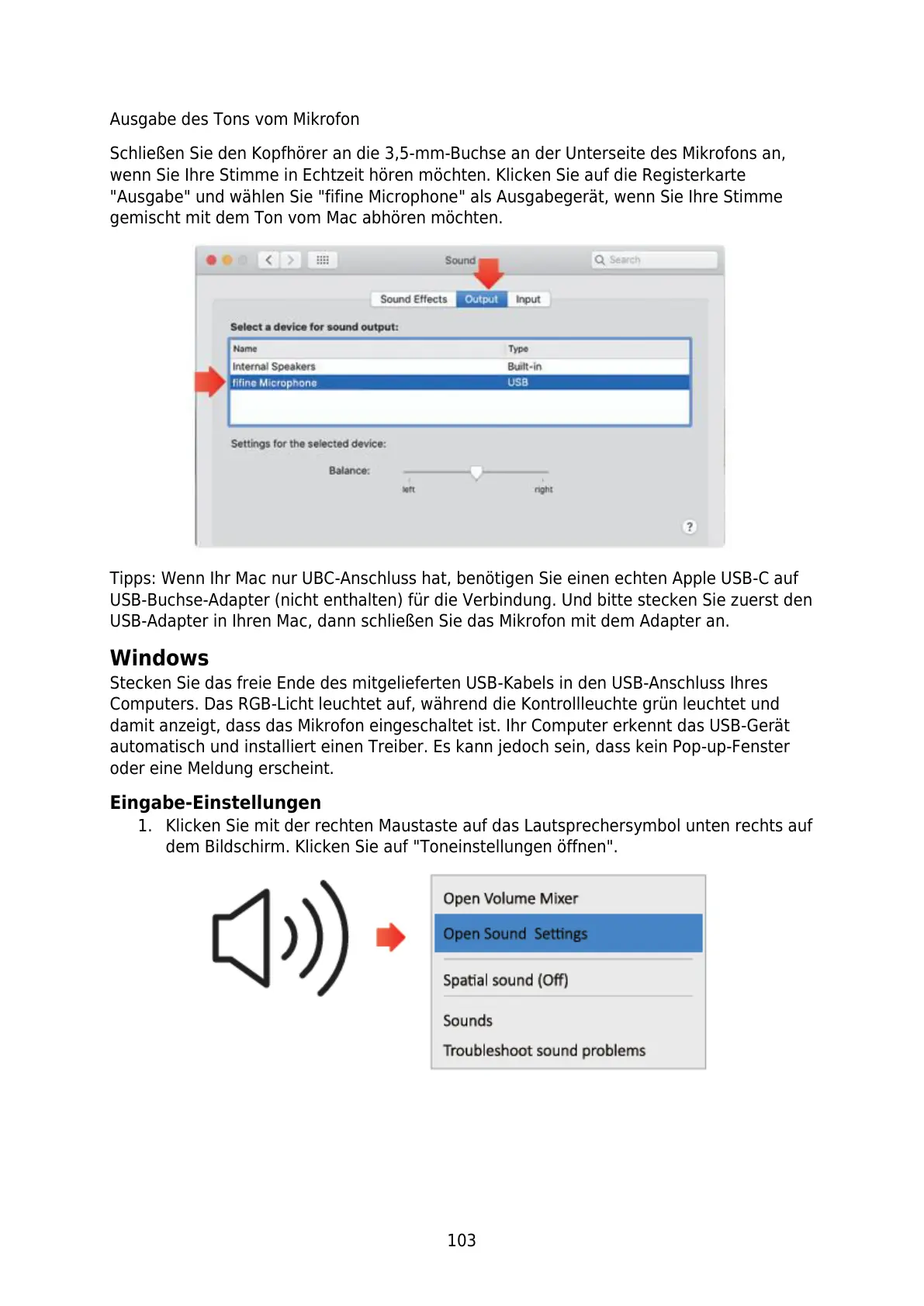 "Ausgabe" und wählen Sie "fifine Microphone" als Ausgabegerät, wenn Sie Ihre Stimme