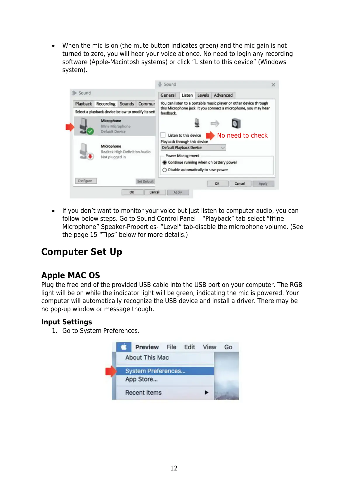 software (Apple-Macintosh systems) or click “Listen to this device” (Windows