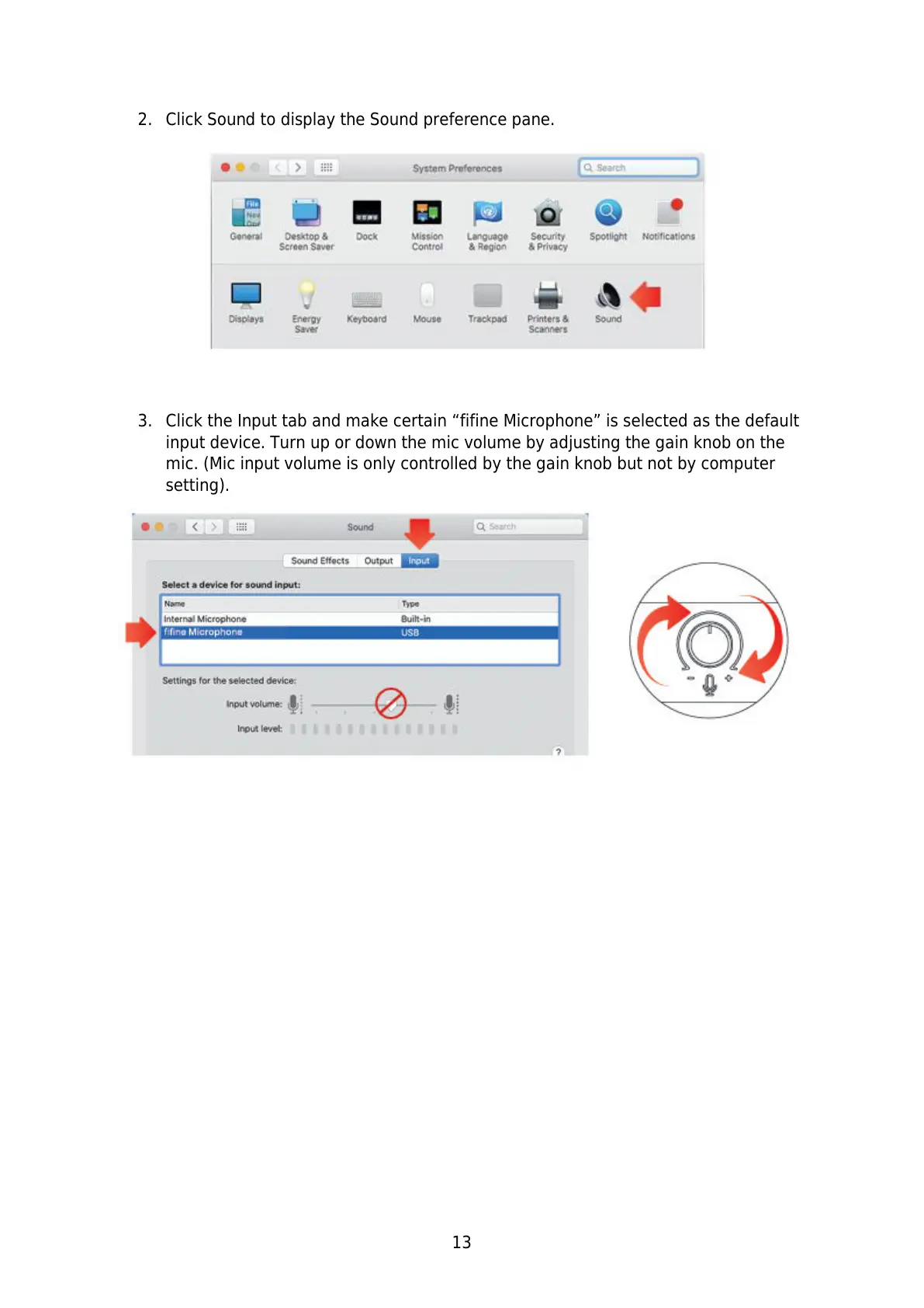 input device. Turn up or down the mic volume by adjusting the gain knob on the