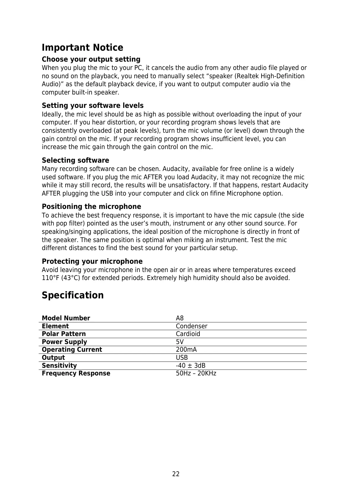 Avoid leaving your microphone in the open air or in areas where temperatures exceed