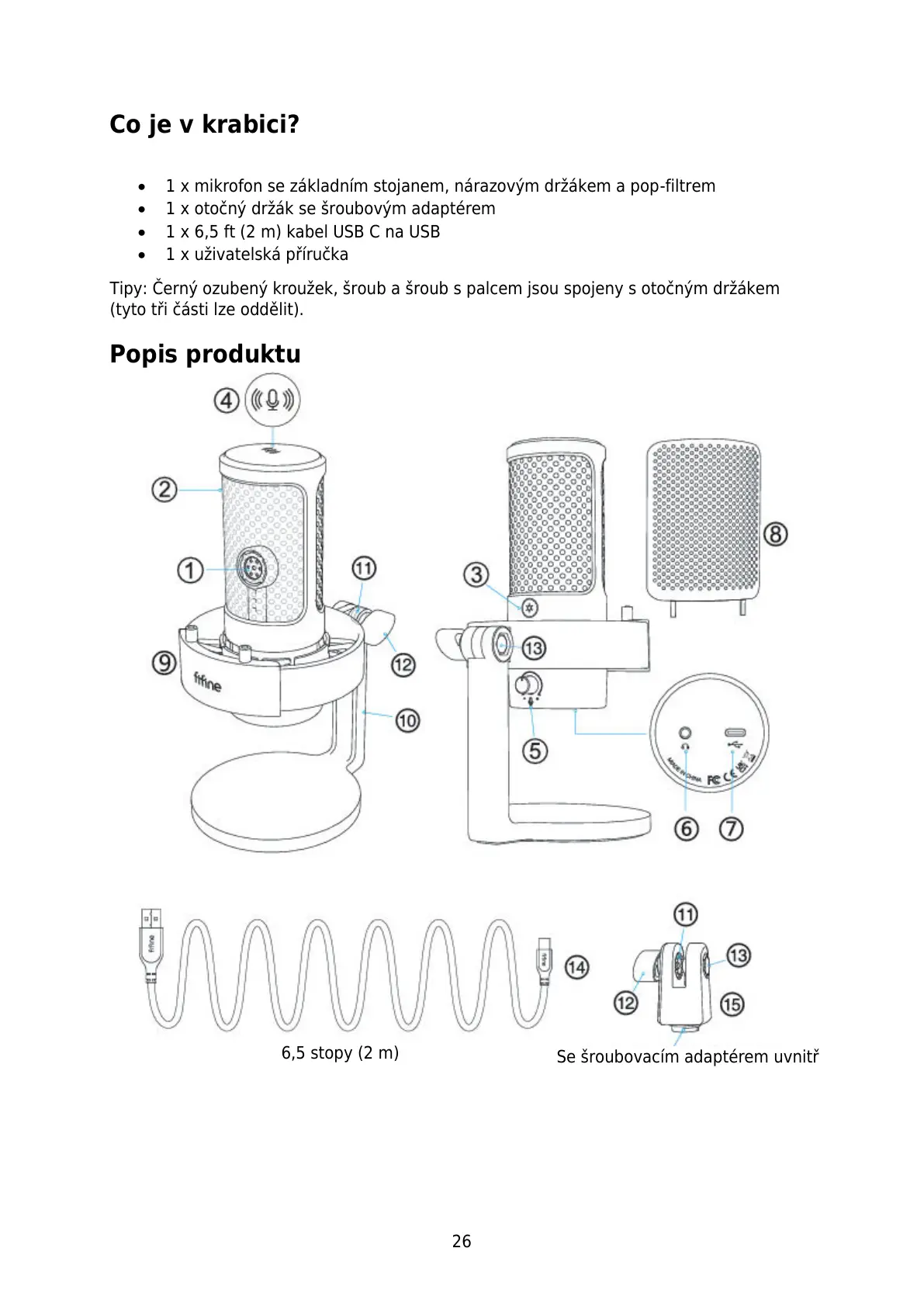 1 x mikrofon se základním stojanem, nárazovým držákem a pop-filtrem