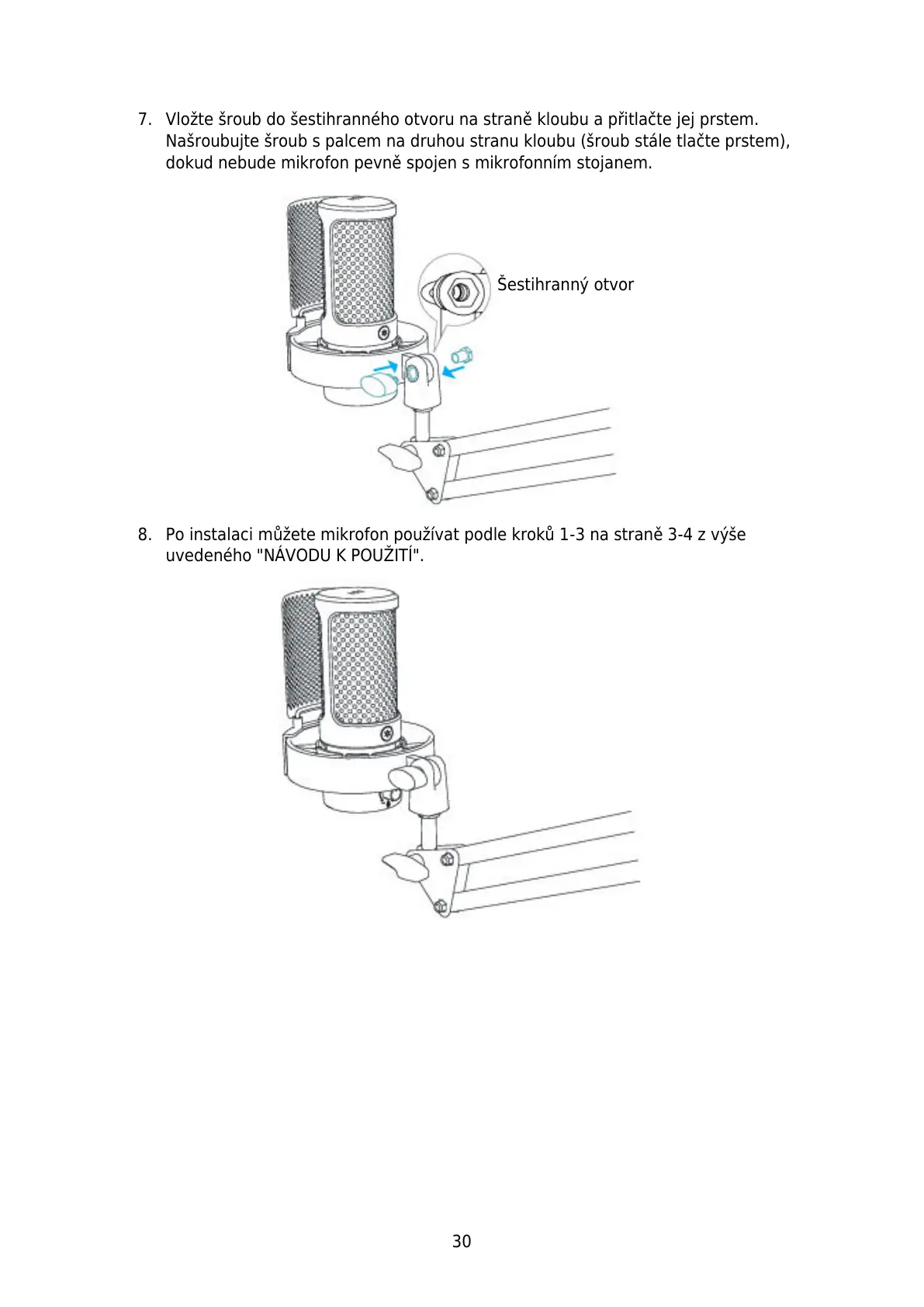 dokud nebude mikrofon pevně spojen s mikrofonním stojanem.