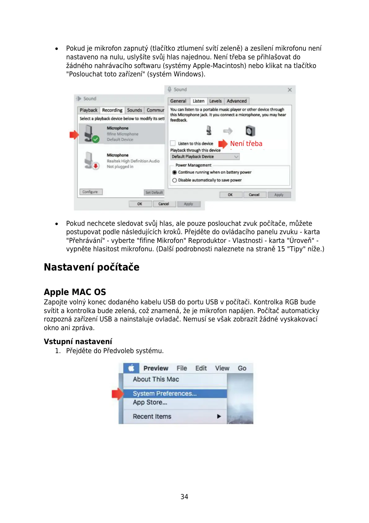 žádného nahrávacího softwaru (systémy Apple-Macintosh) nebo klikat na tlačítko