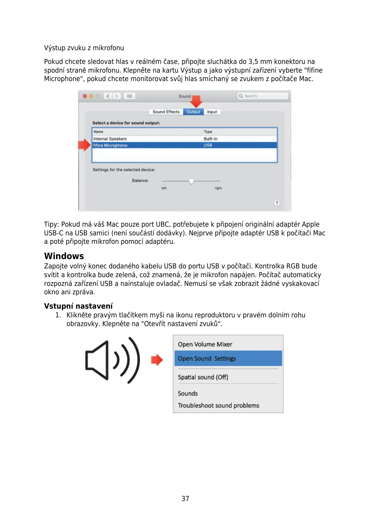 spodní straně mikrofonu. Klepněte na kartu Výstup a jako výstupní zařízení vyberte "fifine