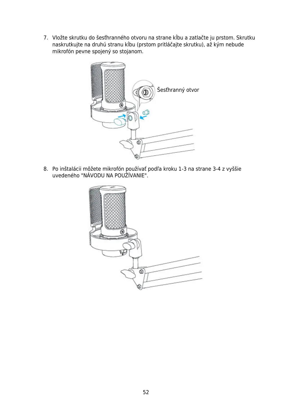 8. Po inštalácii môžete mikrofón používať podľa kroku 1-3 na strane 3-4 z vyššie