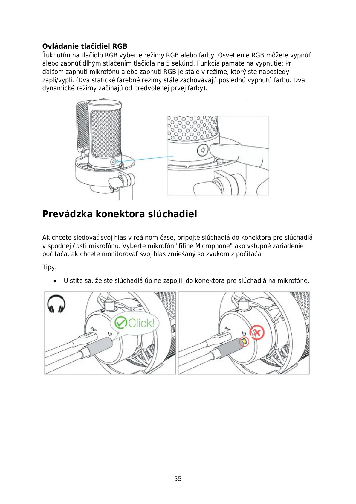 v spodnej časti mikrofónu. Vyberte mikrofón "fifine Microphone" ako vstupné zariadenie