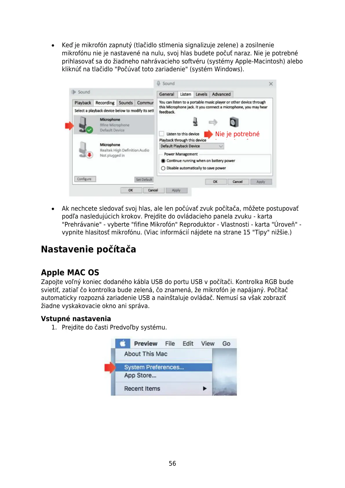 svietiť, zatiaľ čo kontrolka bude zelená, čo znamená, že mikrofón je napájaný. Počítač