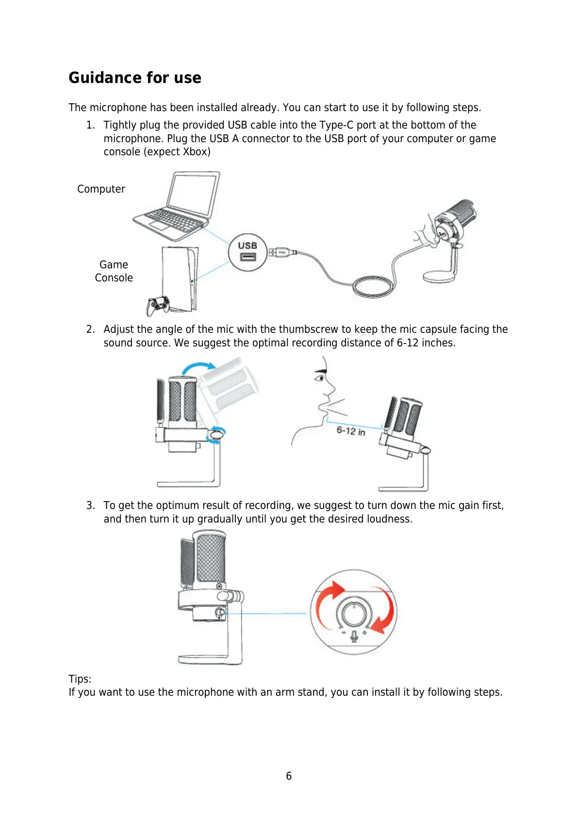 sound source. We suggest the optimal recording distance of 6-12 inches.