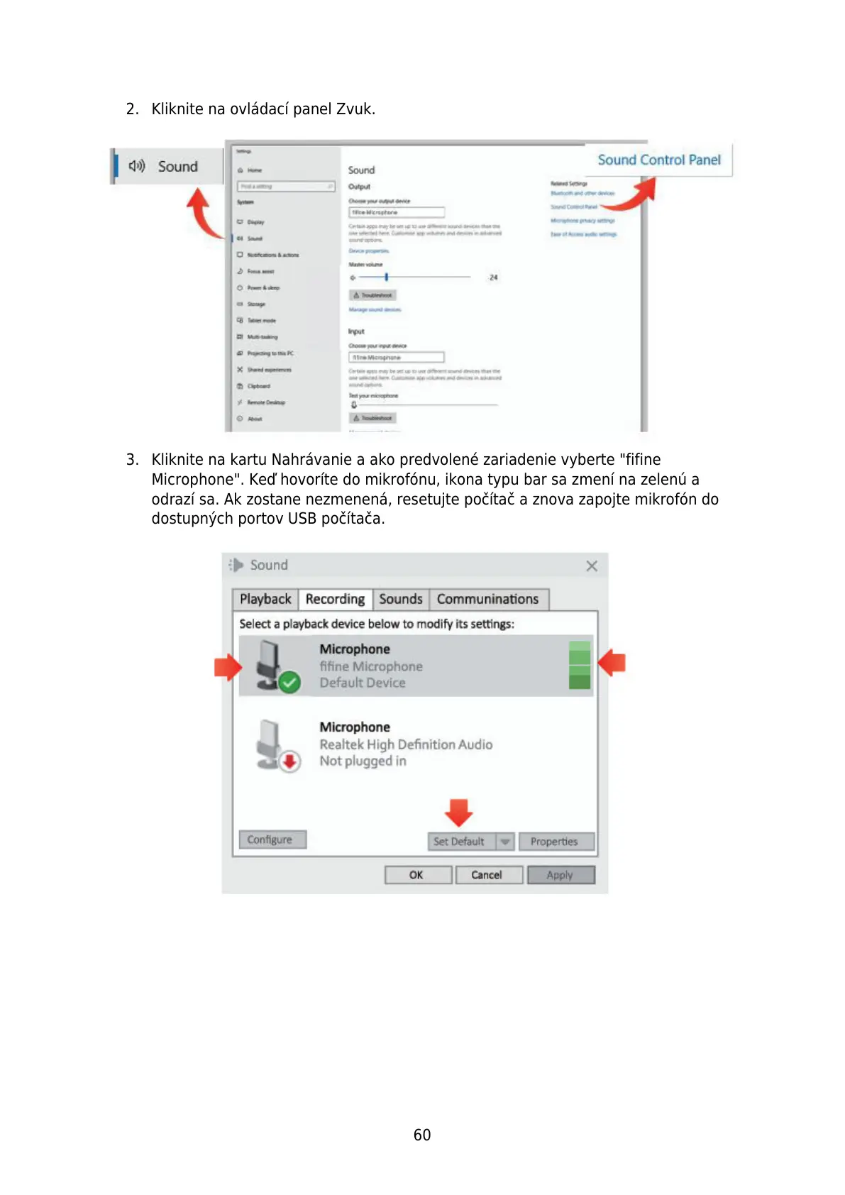 3. Kliknite na kartu Nahrávanie a ako predvolené zariadenie vyberte "fifine