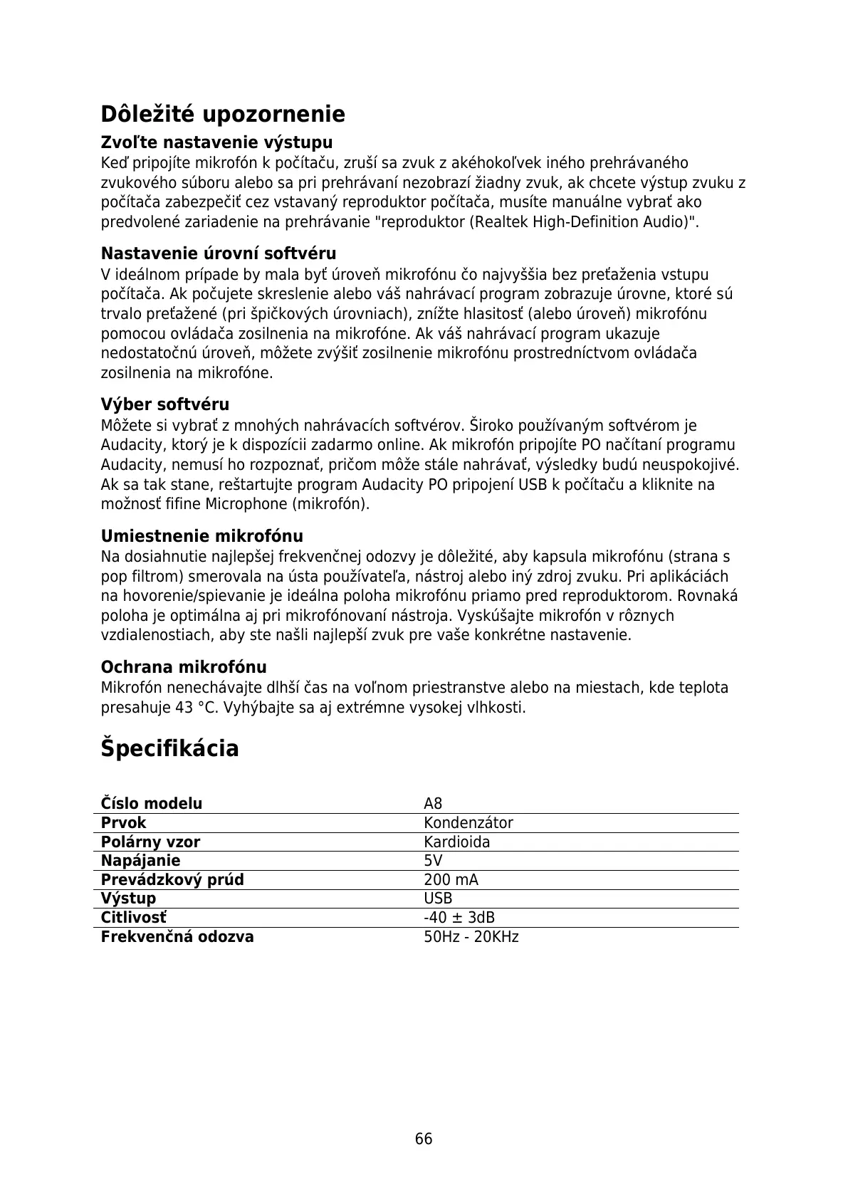 Mikrofón nenechávajte dlhší čas na voľnom priestranstve alebo na miestach, kde teplota