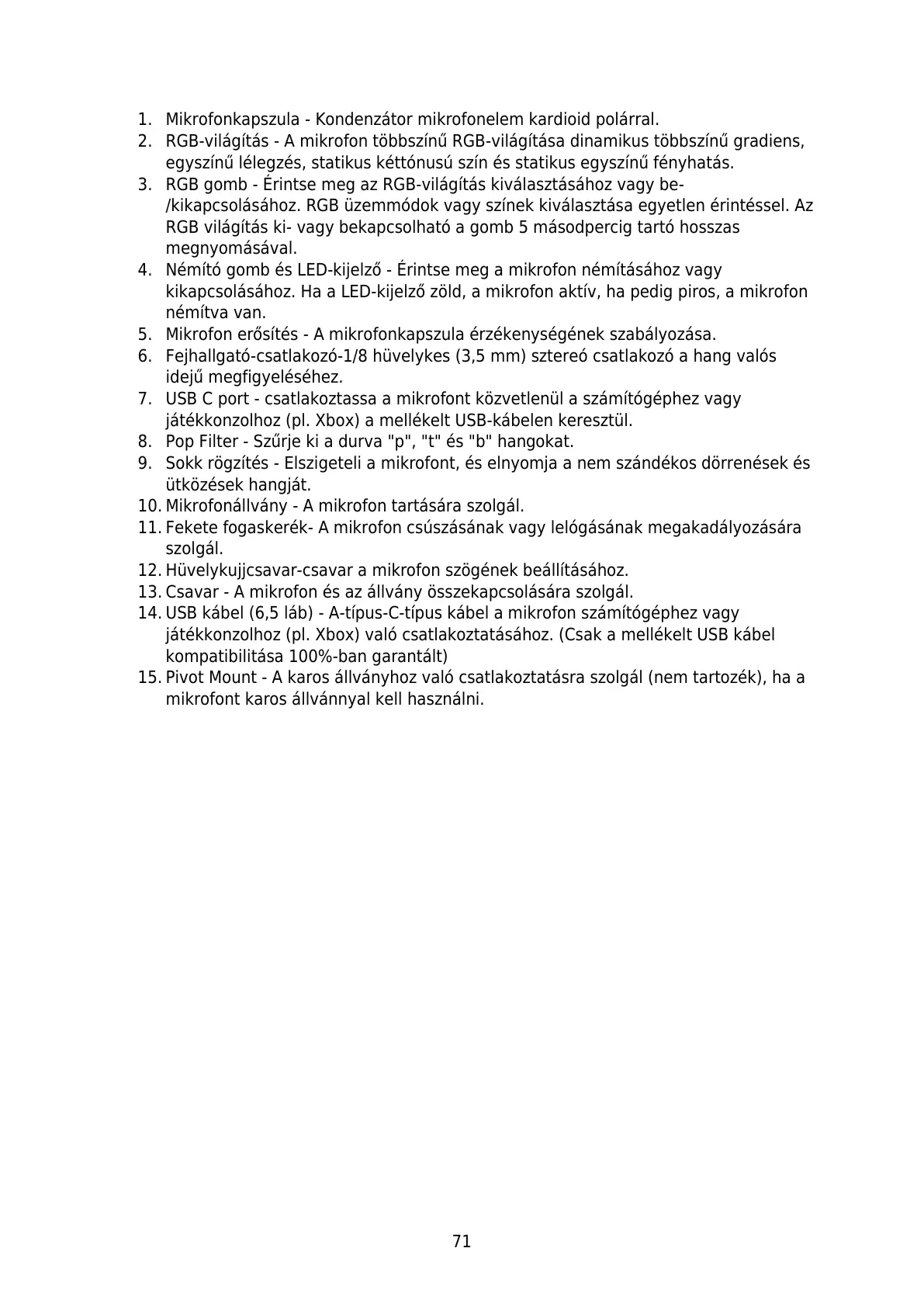 7. USB C port - csatlakoztassa a mikrofont közvetlenül a számítógéphez vagy
