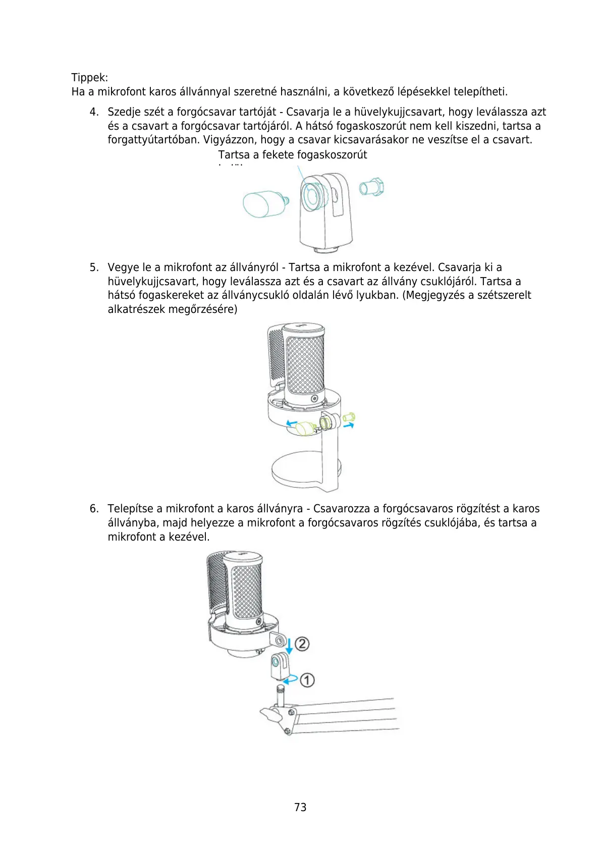 állványba, majd helyezze a mikrofont a forgócsavaros rögzítés csuklójába, és tartsa a