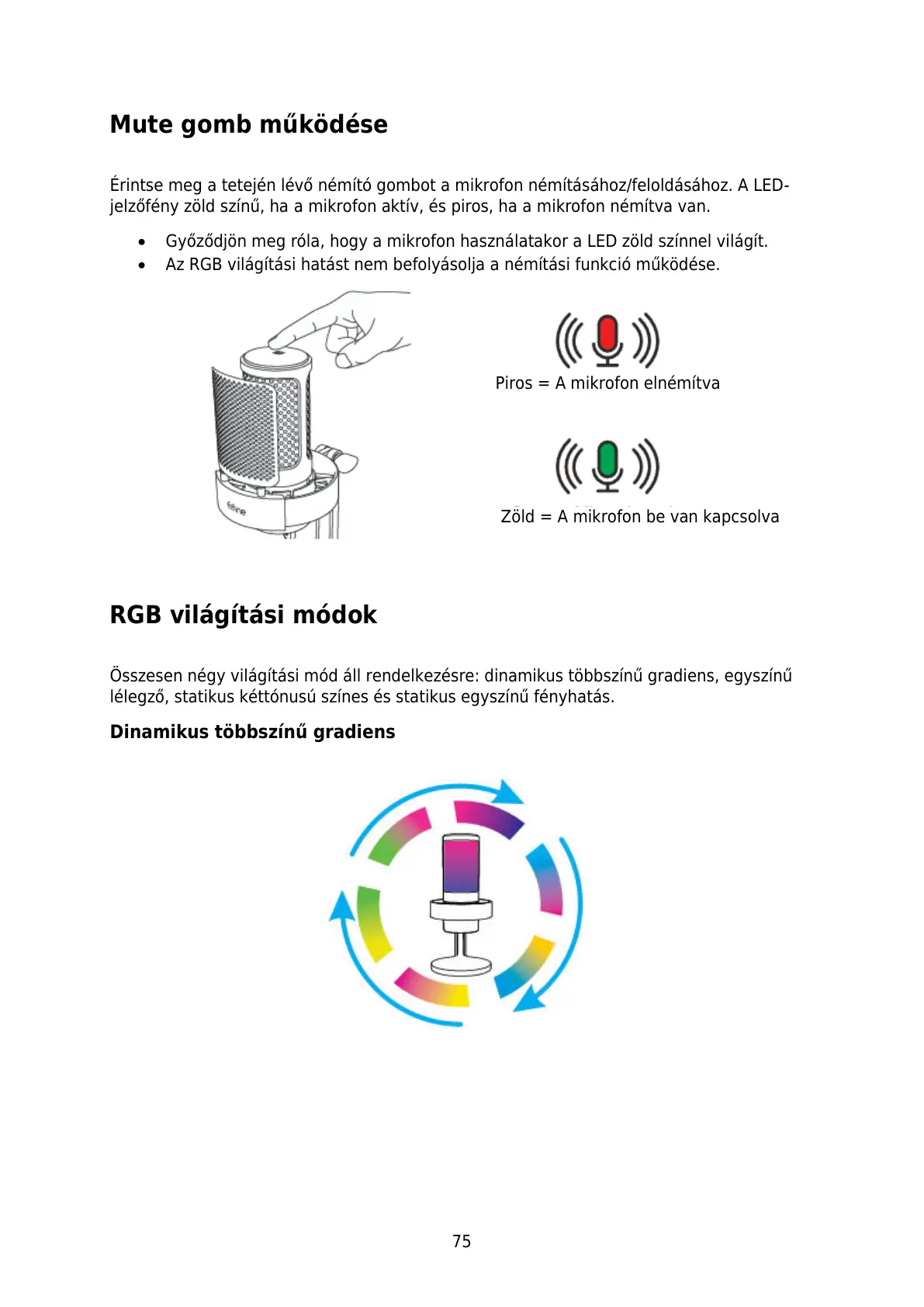Az RGB világítási hatást nem befolyásolja a némítási funkció működése.